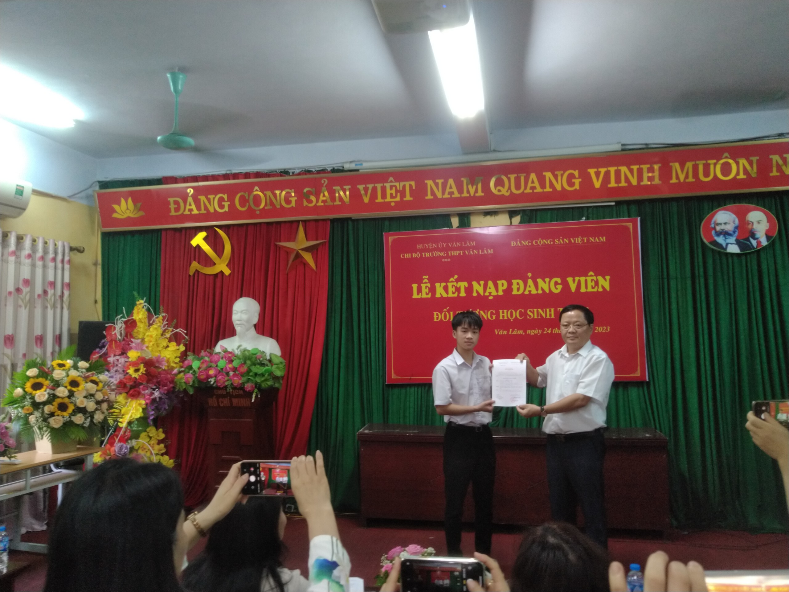 Lễ kết nạp đảng viên đối tượng là học sinh đầu tiên của trường THPT Văn Lâm