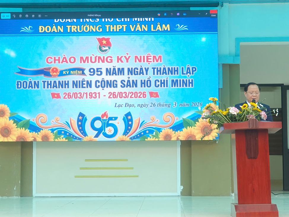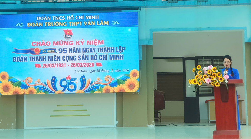 Cô Lưu Ngọc Bích (Bí thư Đoàn trường): Đã ôn lại chặng đường 95 năm lịch sử của Đoàn, đồng thời nhấn mạnh vai trò xung kích, sáng tạo của đoàn viên THPT Văn Lâm trong kỷ nguyên số.